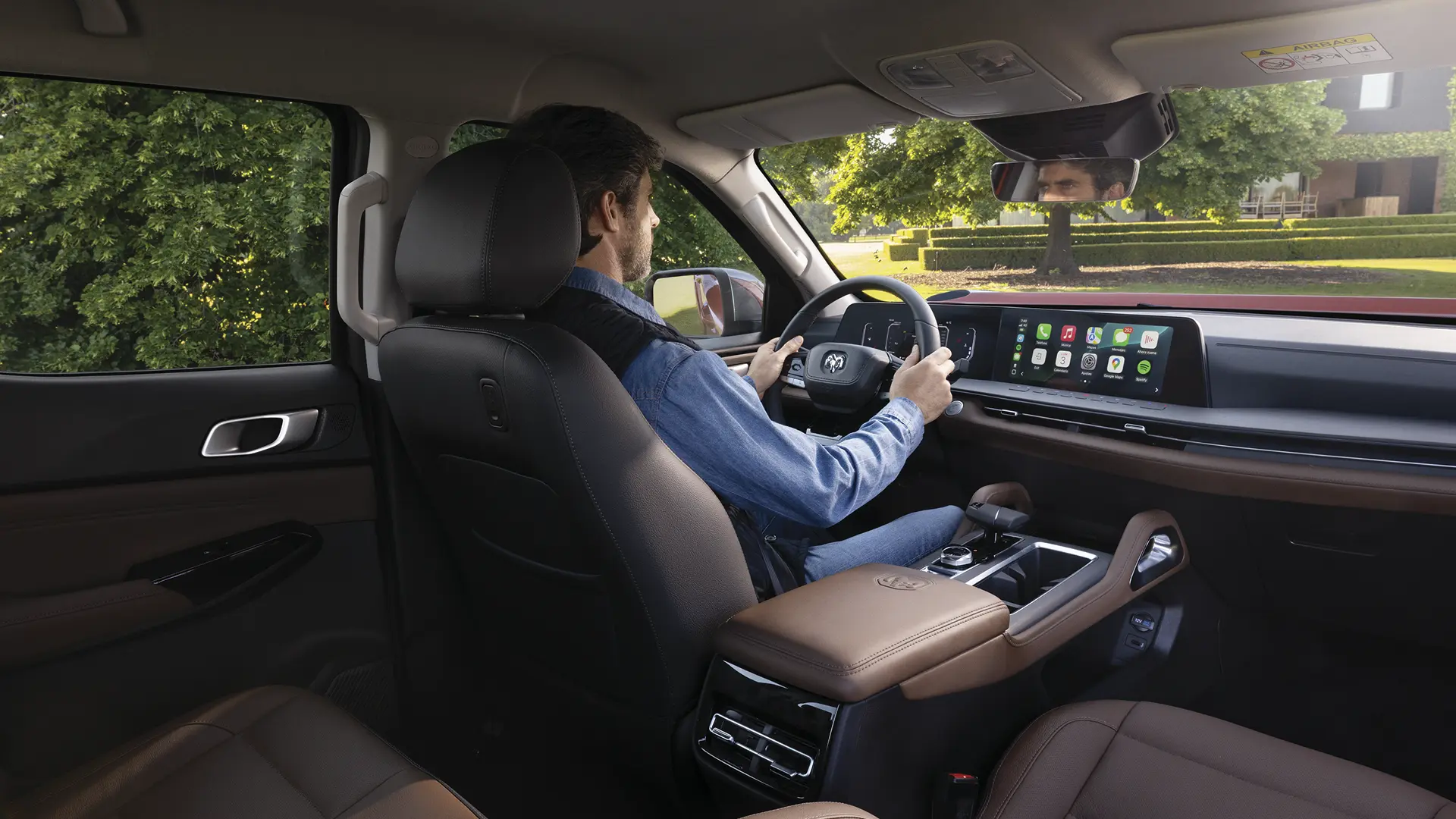 São quase 20" de telas dispostas lado a lado, sendo um quadro de instrumentos digital colorido de 7" e uma central multimídia de 12,3" com Android Auto e Apple CarPlay sem fio, além de navegação embarcada e páginas off-road.