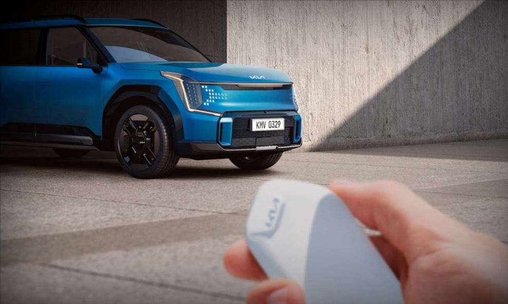 A chave inteligente (Smart Key) possibilita diversas conveniências, entre elas, a partida remota do motor do Kia EV9.
